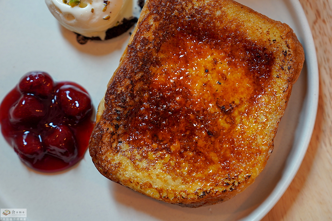 法式吐司上有一層烤過的焦糖
